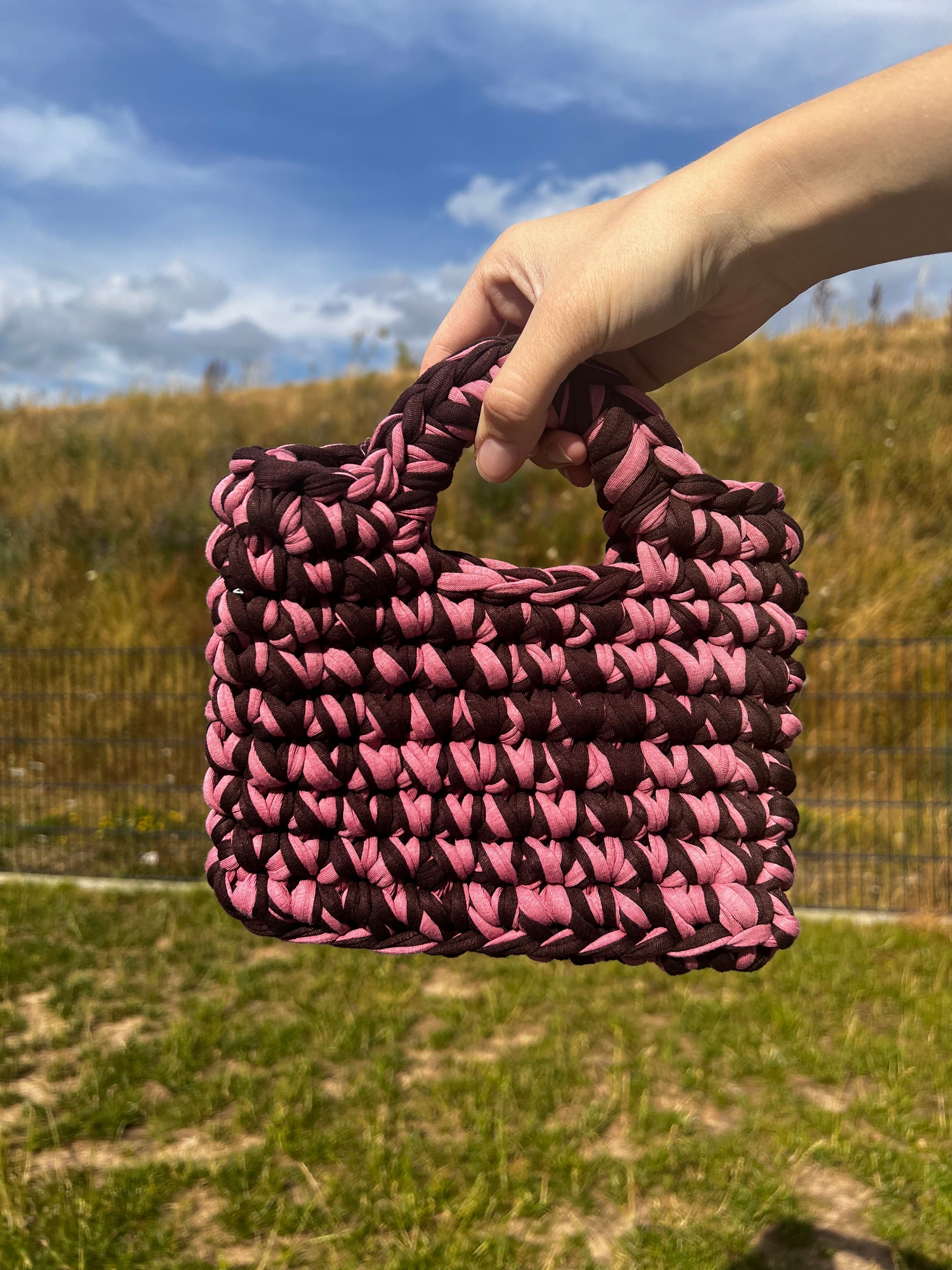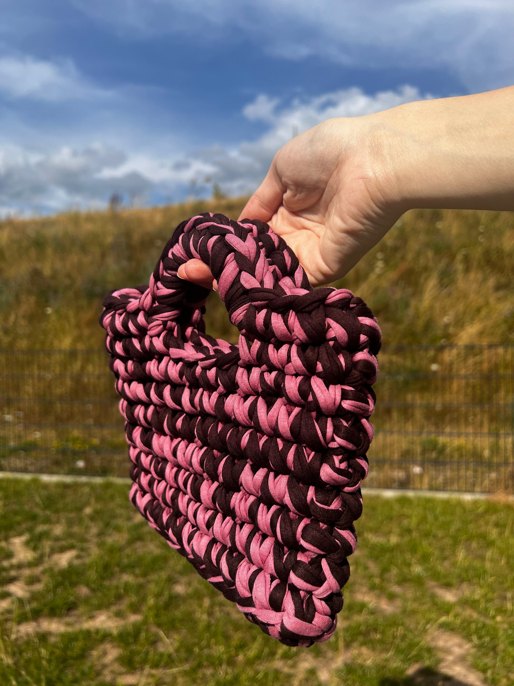 Tauche ein in den warmen Farbtraum von Berry Mocha! Diese handgehäkelte Tasche vereint sanftes Beerenrot mit schokoladigen Brauntönen – ein echter Hingucker mit natürlichem Charme. Einen abnehmbaren Schulterriemen wird mit der Tasche mitgeliefert. Jedes Stück ist ein Unikat und wurde mit viel Liebe zum Detail gefertigt.