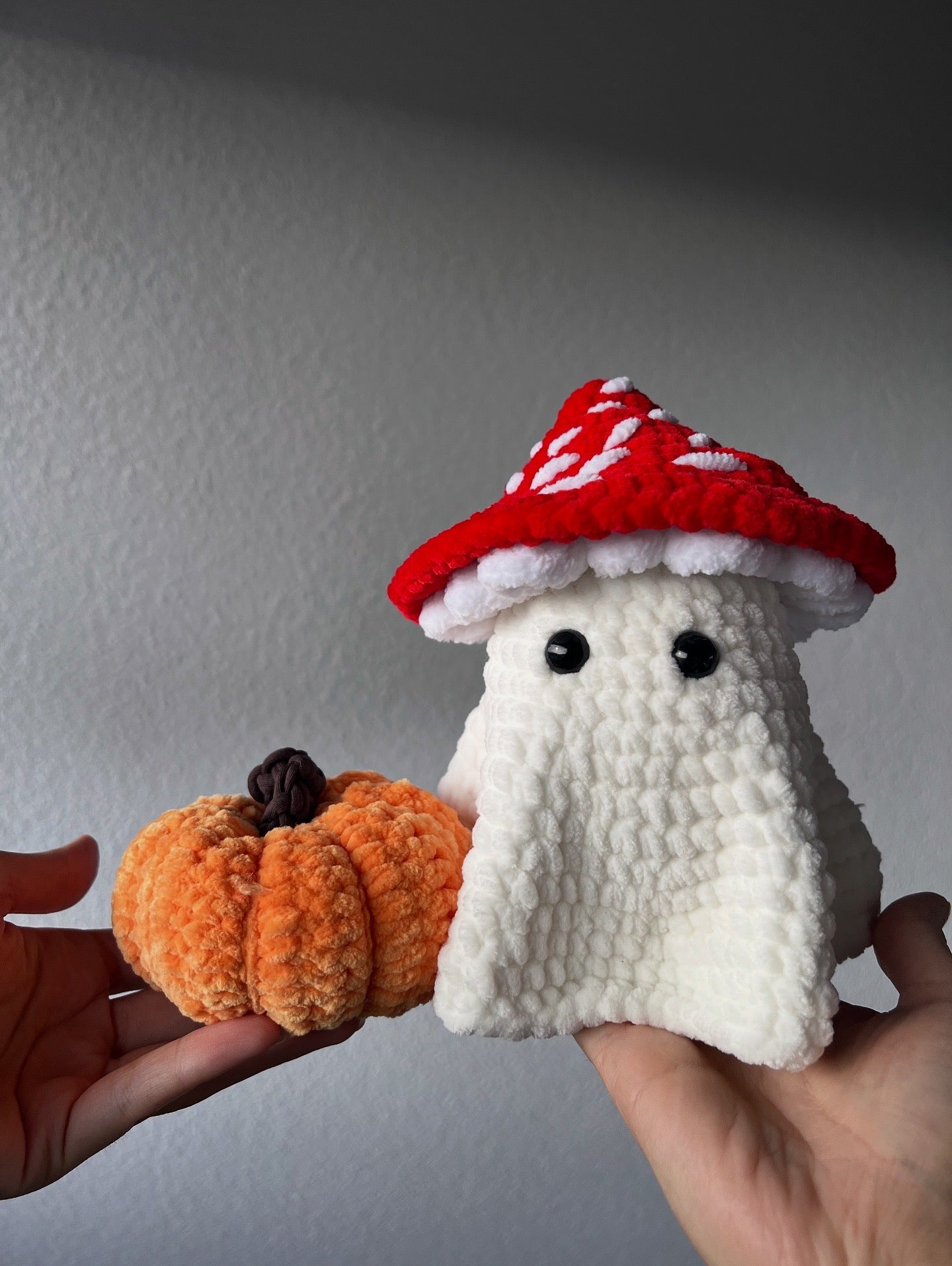 Dieses liebevoll handgehäkelte Set bringt herbstliche Gemütlichkeit direkt zu dir nach Hause! Das kleine Gespenst mit seinem niedlichen Fliegenpilzhut ist nicht gruselig, sondern einfach nur zum Verlieben.😍 Der flauschige Kürbis rundet das Duo perfekt ab und sorgt für die passende Herbst- und Halloween-Stimmung.👻