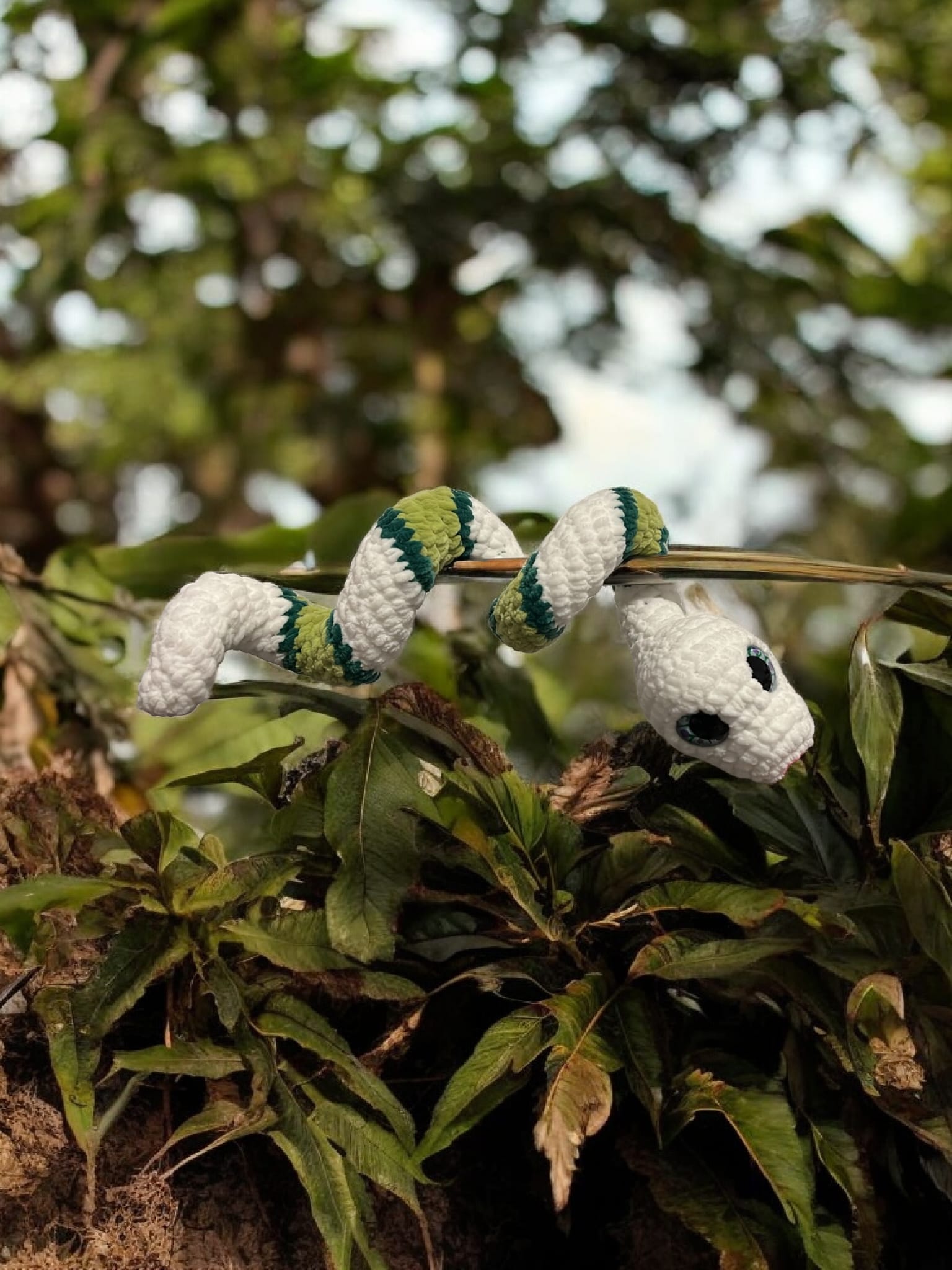 Sina ist eine kleine, freche und süße Schlange, die sich gerne durch Pflanzen schlängelt oder auf deinem Regal chillt.😊 Mit ihren großen Kulleraugen und den sanften Grün/Rosa- und Weißtönen ist sie einfach zum Verlieben!🤍 Handgemacht mit viel Liebe zum Detail – perfekt als Deko, Geschenk oder kuscheliger Begleiter für kleine und große Schlangenfans. 💫