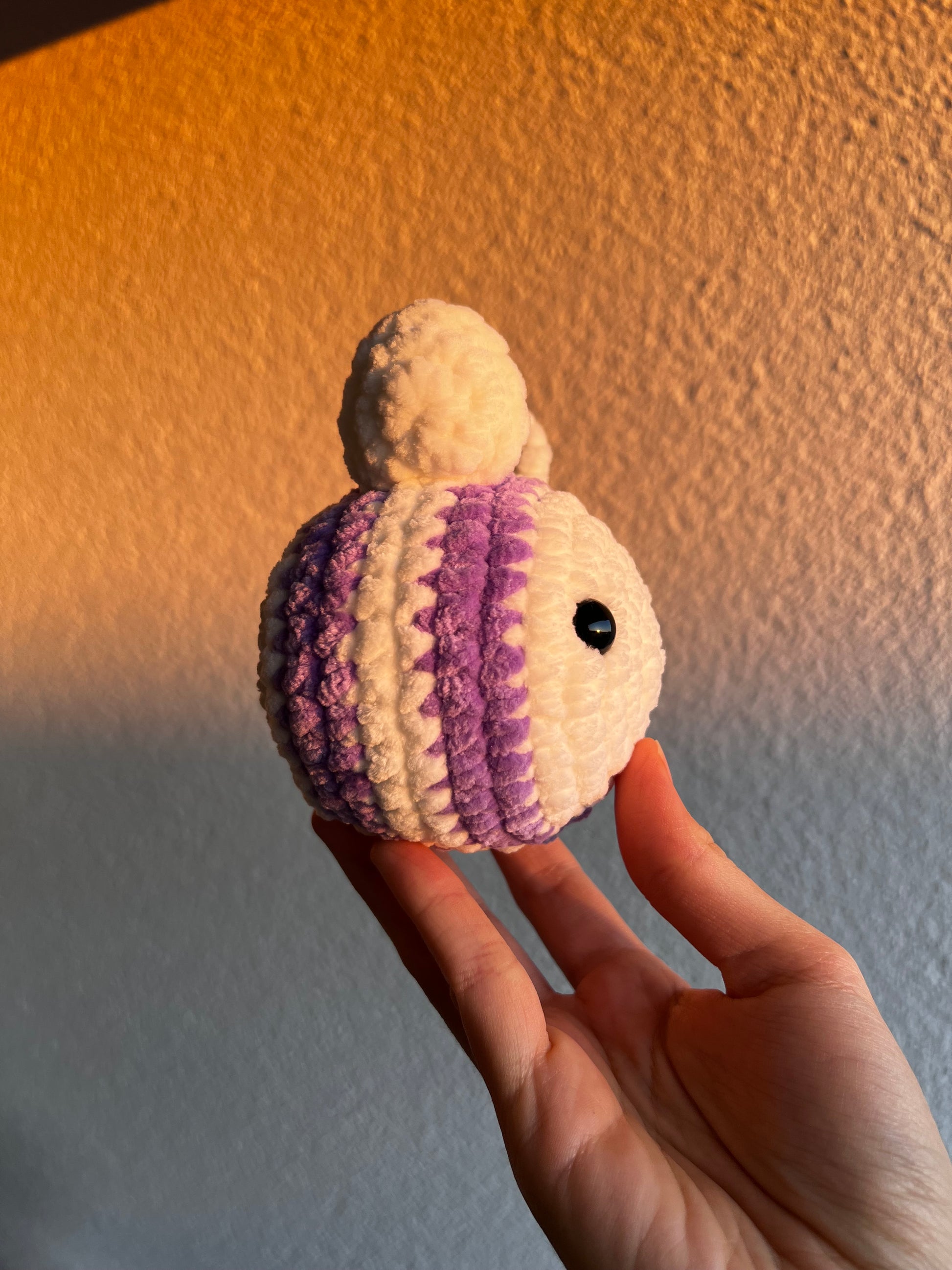 Eine süße Biene zum Verlieben💜 – mit niedlichen Flügeln, schönen Streifen und viel Liebe gemacht. Perfekt als Geschenk oder süße Deko! 😊
