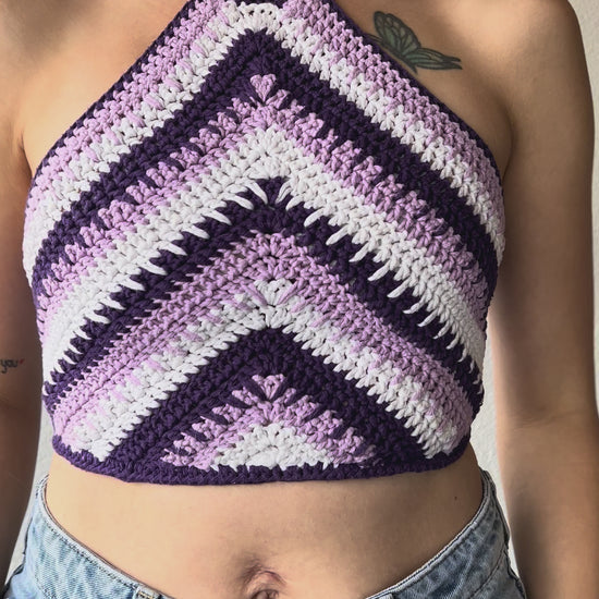 Das Violeta Crochet Top ist ein handgefertigtes Häkel-Top im modernen Boho-Stil. Die harmonischen Farbtöne aus Lila, Flieder und Weiß verleihen ihm einen femininen und sommerlichen Look.💜🤍